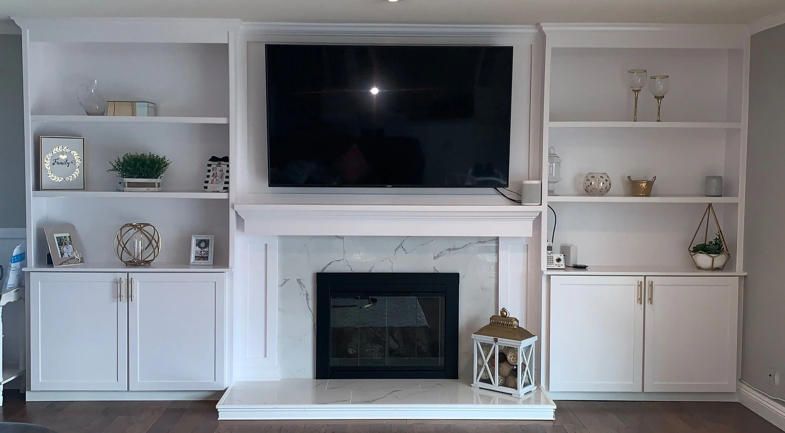 One of the most common mistakes when placing a TV next to a fireplace is to drive it as deep as possible behind the fireplace mantel. See more ideas about home living room alcove shelving alcove ideas living room. Hiding TV and lift in furniture next to furniture with matching custom cabinets.